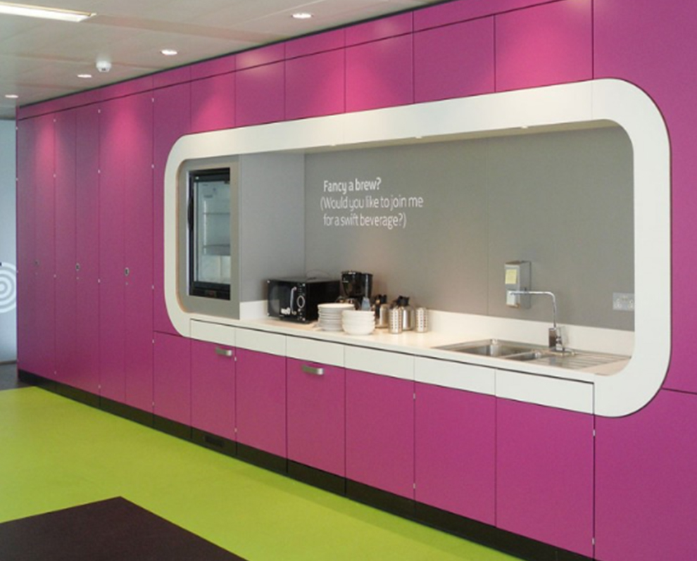 התפתחויות טכנולוגיות בתחום חומרי הבנייה הניבו מגוון פתרונות תכנון אדריכליים בעלי יתרונות טכניים ועיצוביים: מחיצות זכוכית שקופות המאפשרות החדרת אור ומיצוי תכנוני לחללים פנימיים, שקיפות מלאה ושליטת בעלי המשרד במתרחש בכל אזור המשרד; וכן מחיצות אקוסטיות (קיוביקל) המאפשרות עבודה בחללים משותפים (open space) ללא פגיעה בפרטיותו של העובד הספציפי. שימוש במחיצות ודלתות כאלמנט עיצובי המשפיע על עיצוב חלל המשרד: מעצבים נוטים להשתמש במחיצות